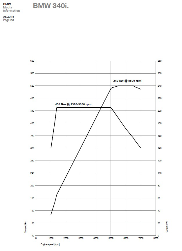 发动机和电机扭矩输出特性完全不一样,这里以宝马340i的3.0T发动机为例,峰值扭矩输出范围为1380-5000rpm,但是这个峰值扭矩输出是有前提的,节气门必须是最大开度,也就是油门踩到底!