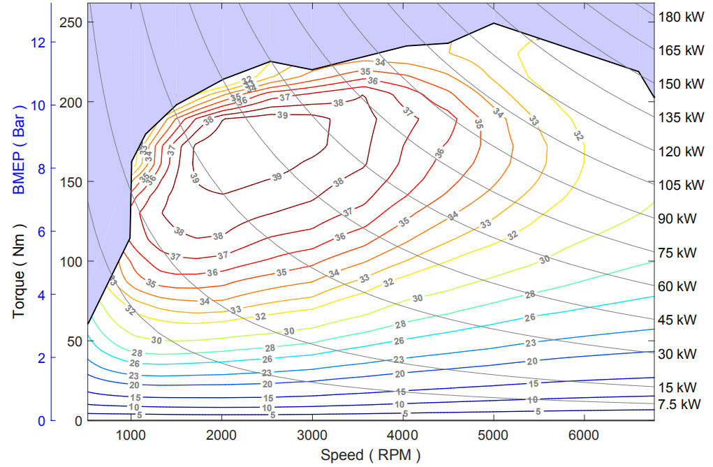 汽油发动机随着扭矩和转速区间的变化,效率差异会很大,最低5%,最高40%。这种效率差异,使得发动机必须搭配变速箱,假设发动机一直维持在最高效率区间运转,靠变速箱升降挡来调节扭矩和功率,油耗会特别理想。这就是早期搭载CVT变速箱的轿车,踩油门后发动机转速变动很小的原因。