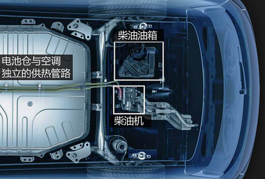 这套系统在意识到户外温度过低时就会自动给电池组加热,有意思的是,在加到0℃以后,系统就会停止加热,以此降低“油耗”。就是不知道利用柴油产生的热量导入乘员舱加温来降低车载空调对电量的消耗和燃油车拉电给纯电动车加电有何区别呢?