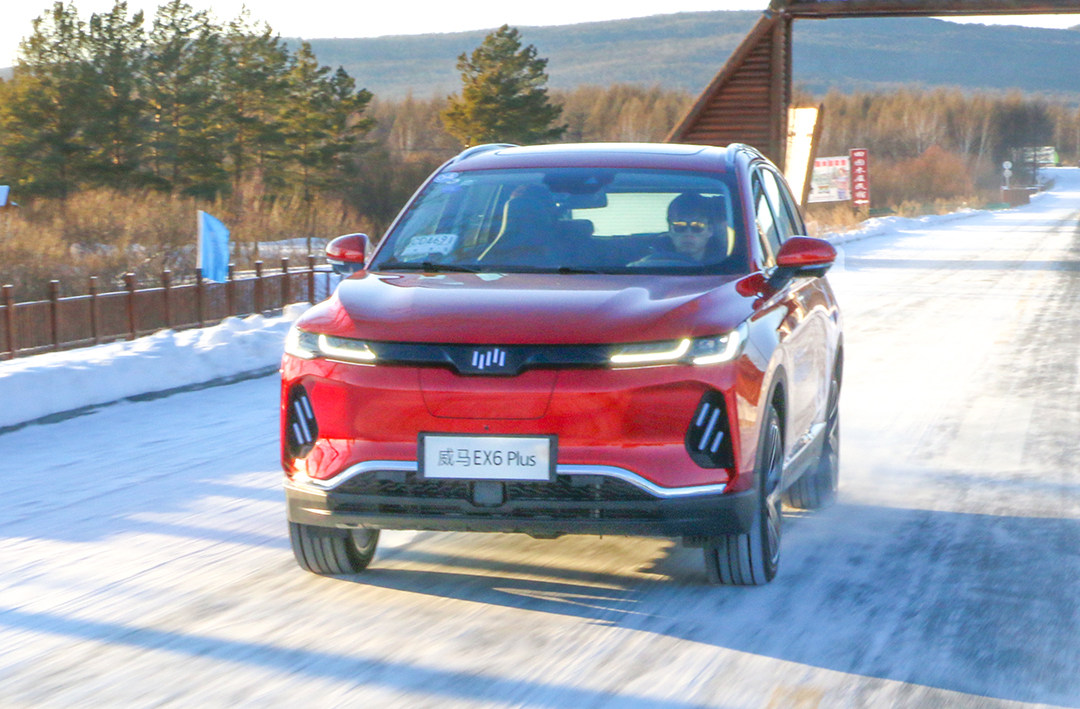 此次长途测试,由于受冻土冰雪路面、雪地胎等因素的掣肘,暂且就不谈新车动态下包含NVH控制、底盘悬架调校等在内的舒适性体验,只聊聊威马EX6 Plus这款车的智能人机交互以及在冰雪环境下的续航与操控性能。