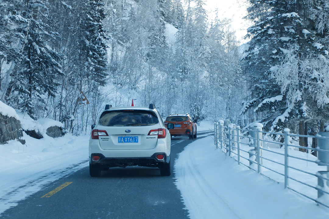 从禾木到喀纳斯,连绵的雪山一副“千里冰封,万里雪飘”的画面,如此美景若只专注于驾驶未免太浪费,Eyesight智能辅助驾驶系统可以实现全速域自适应巡航,和车道偏离修正辅助,双脚得以释放,也可减少修正转向的注意力,长途驾驶有利于缓解驾驶疲劳。
