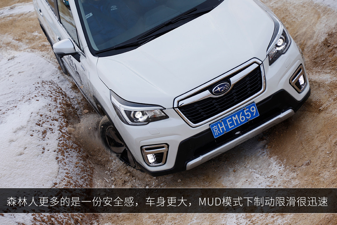 其实傲虎和森林人的通过性都差不多,性能也并不比XV弱,只是森林人由于体型较大,带来的重心转移会更明显,经验不足的司机对越野时车距的控制也相对没那么容易上手,不过森林人更多的是一份安全感,车身更大,悬挂也相对软一些,泥地模式下制动限滑很迅速,尤其是爬长坡,是避免溜车的利器。