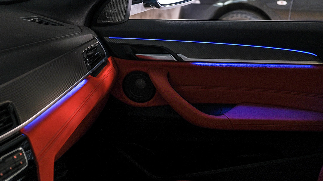 6色氛围灯也是全系标配,视觉效果还是OK的,可以看出即便是最入门的SUV,宝马仍会为它赋予足够的精致感和仪式感。