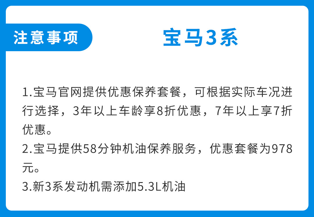 整体来说,新3系在保养价格上与旧款车型并没有太大出入,在机油的使用量上反而比以前有所增加,不过还好宝马官方能提供保养优惠套餐,这可以让后期保养的价格能有一定的下降。而在保值率上则非常符合德系车的“作风”,从第三年开始就会呈现滑坡状态,至于在车型选择上还是建议从325车型开始选吧,虽然多花一点钱但是你能够获得更好的驾驶体验。
