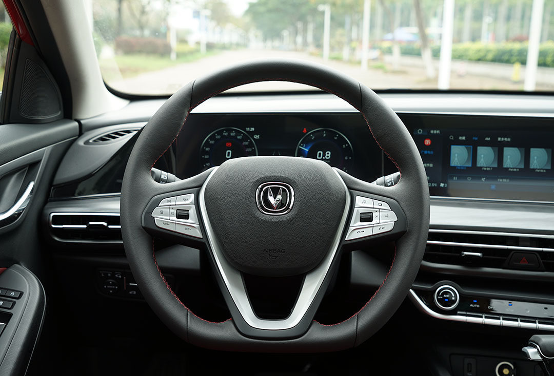 平底方向盘也与逸动PLUS整体的动感设计相呼应,同时两侧的多功能按键有着不错的质感,恍惚间还有点宝马车型的影子。