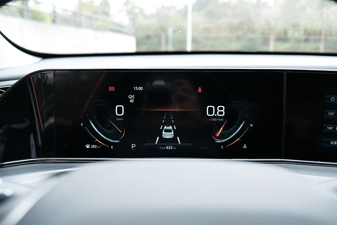 10.25英寸的仪表盘在页面的造型上有着不错的设计感,并且不同的驾驶模式对应不一样的页面,在显示效果上可圈可点,只是偶尔会遇到反光的问题,尤其是在阳光强烈的情况下。