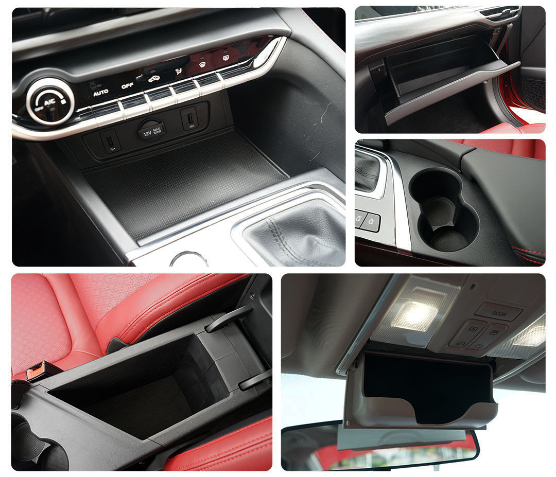 在储物空间方面,逸动PLUS全车上下都有着较多可以放置小物品的地方,挡把前方有储物格,以及两个USB充电接口和一个点烟器,上方还有眼镜盒,实用性做的不错。