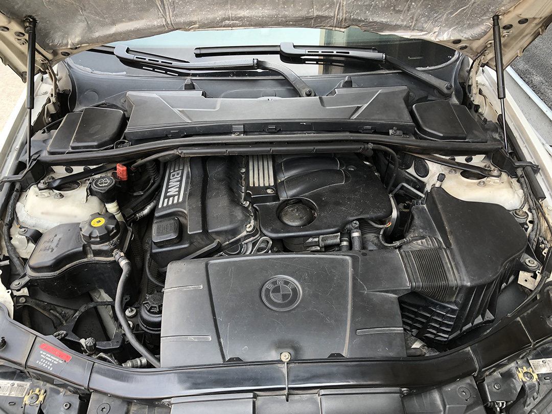 你以为我这样就会下手了吗,那肯定不是。在经过一轮路试后发现整体的表现还算不错,但是在动力响应上略微欠缺,估计是节气门过脏的问题所导致的。停下后再次打开发动机盖,仔细观察那里会存在漏油或渗油的情况,毕竟一辆上了年纪的宝马检查肯定要细一些。