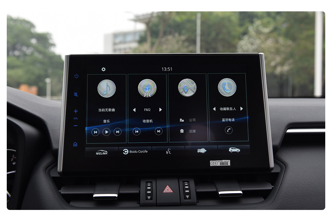 中控屏尺寸到位,但UI设计和显示的分辨率并不理想,屏幕厚度而且边缘也较大,有一定的提升空间。