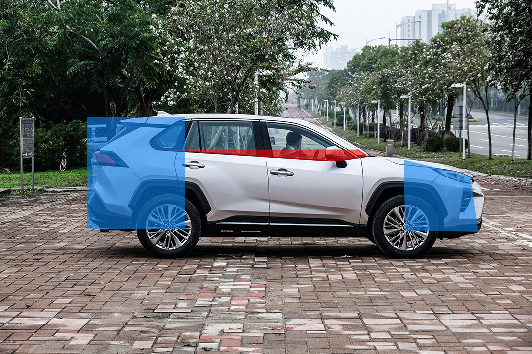 不平衡的地方在于车头和窗线,车头其实是很扁的,而且引擎盖很低像个梯形,车尾却像个正方形,这是不平衡之一;窗线其实非常低的,这与高车身高门槛的视觉重心形成了不平衡点之二;当然这也最大的收益是——出色的视野,这是丰田TNGA理念下对驾驶的优化。