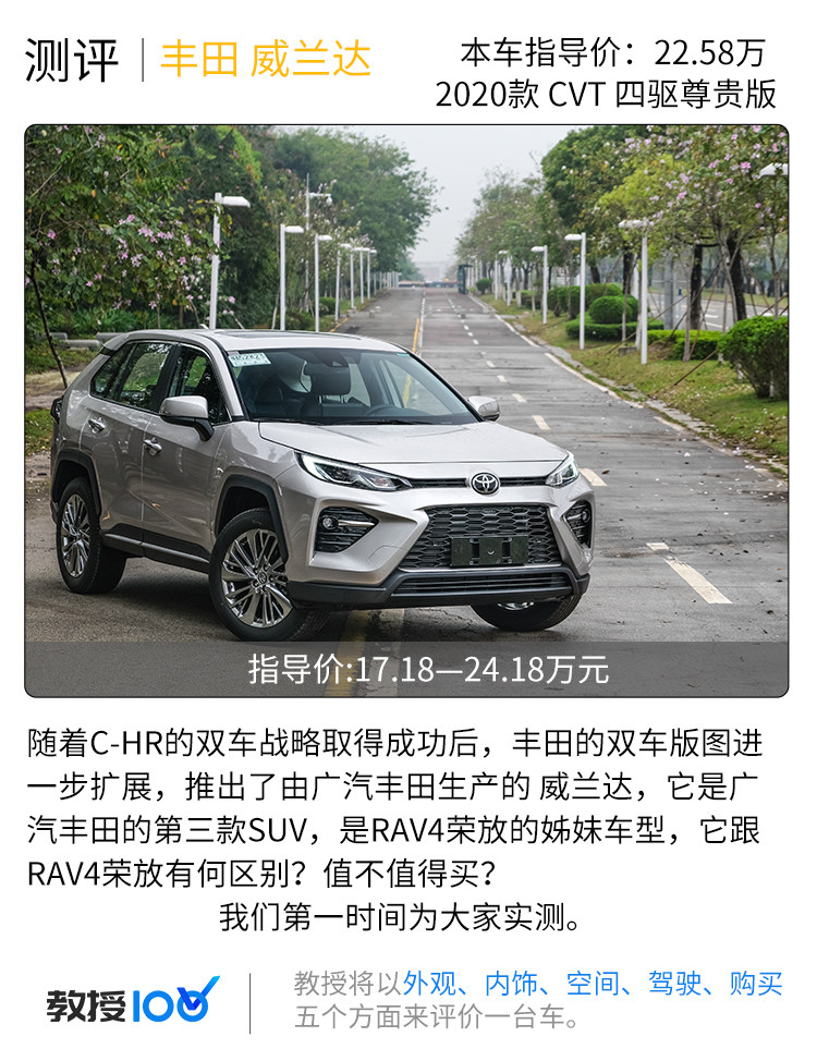 经过多方面实测,威兰达作为RAV4荣放的姊妹车型,本身就有着足够强的产品力,譬如很成功的口碑基础,稳定的品控和强大的实用性,在加上其自身的一些差异化,相信威兰达会是一款非常值得买的车型。