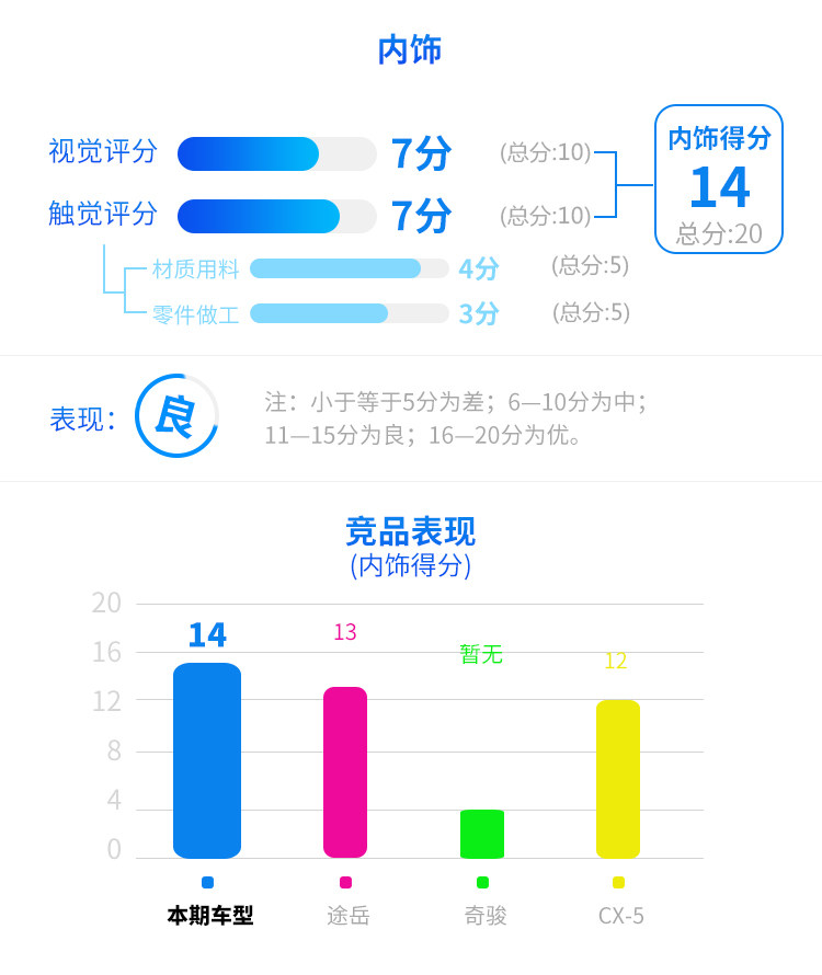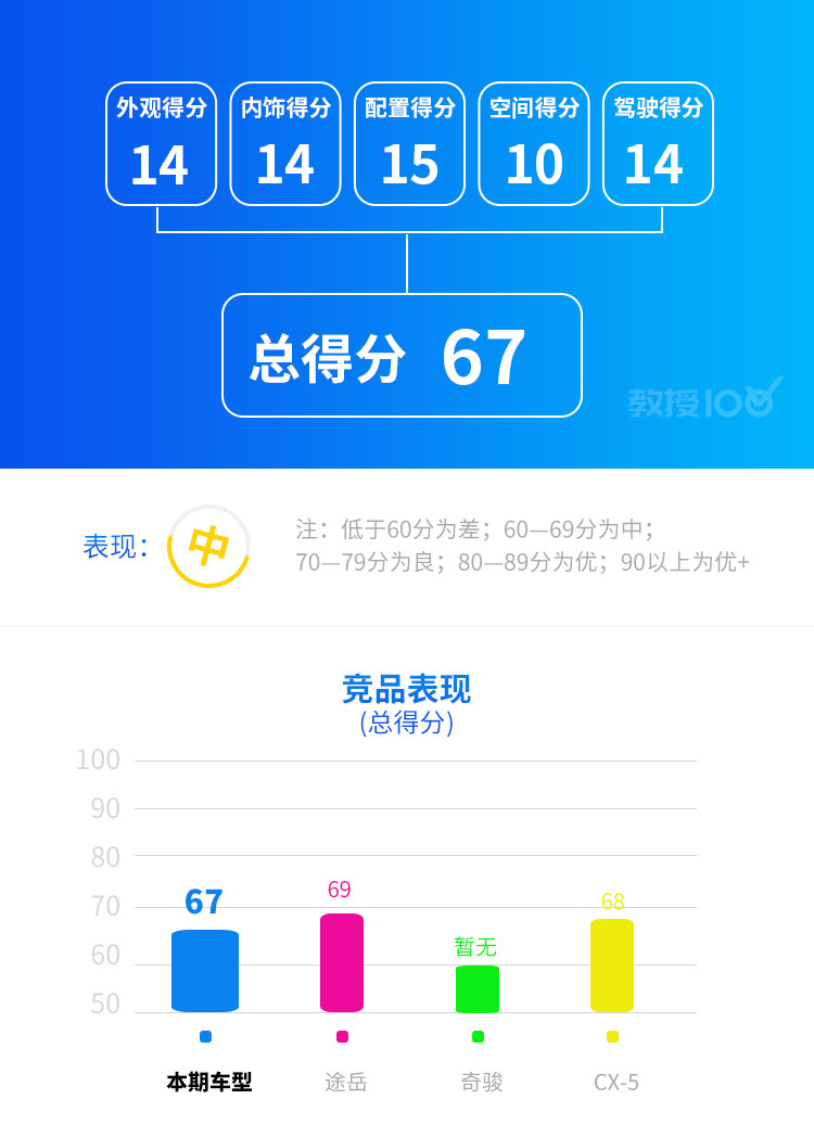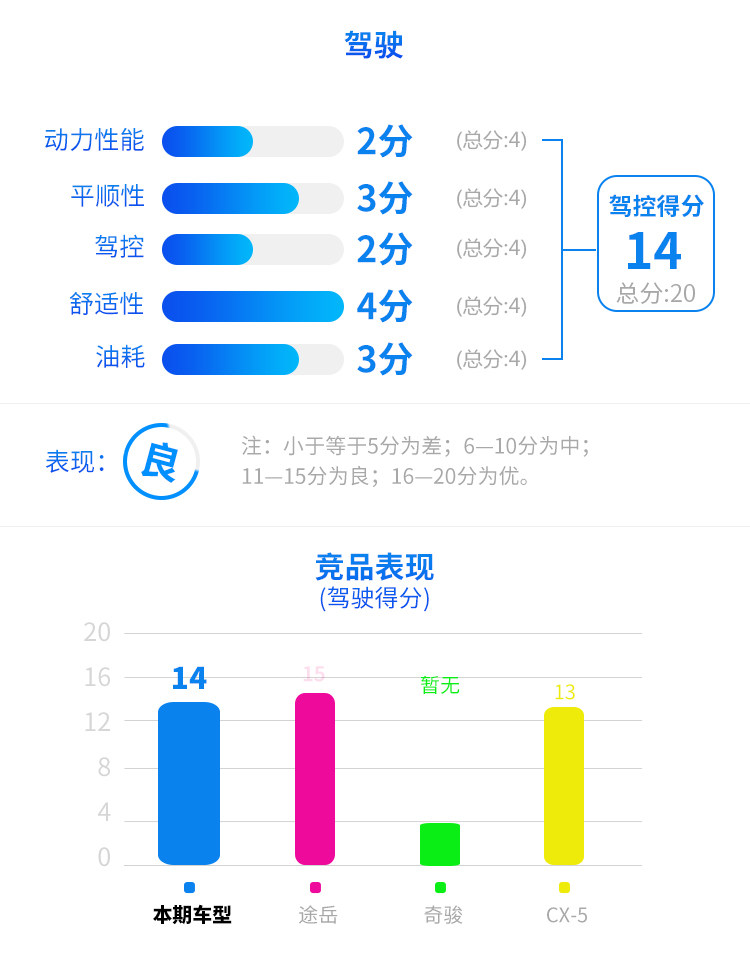 空间方面主要是威兰达的纵向空间不算突出,所以得分相对较低,但实际乘坐体验还是比较令人满意的,另外储物空间和尾厢空间都比较令人满意。