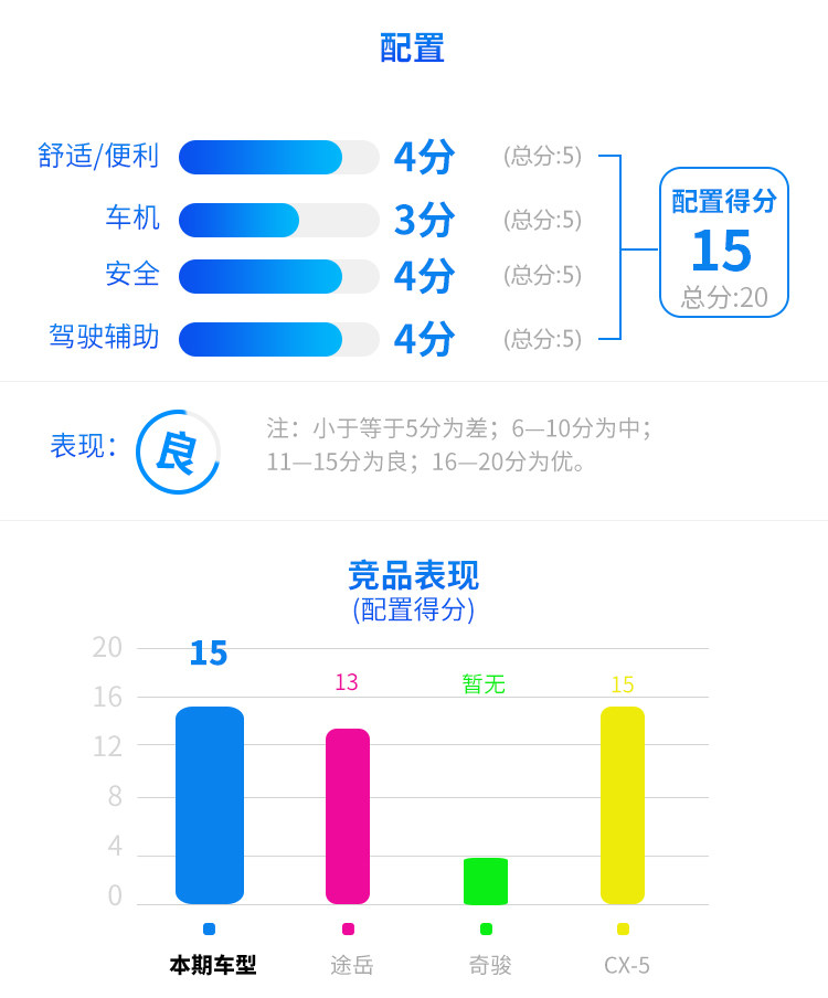 配置方面由于是2.0 L顶配,配置还是比较令人满意的,而且安全配置非常出色,除了最低配以外,主动刹车ACC等基本都有配备,辅助驾驶配置非常丰富,唯独车机部分有待提升。