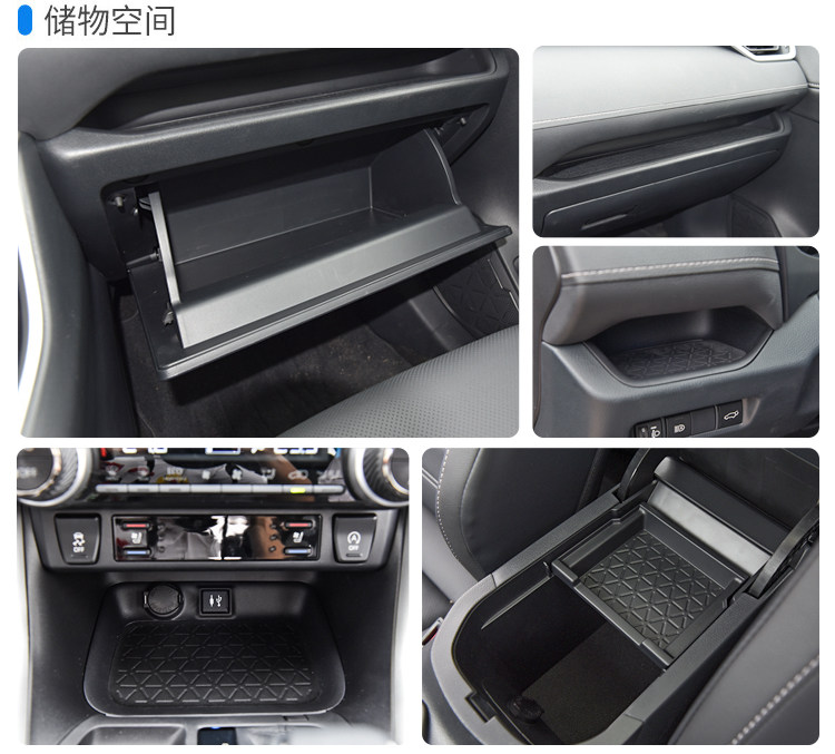 全车储物空间数量12个,手套箱上方有一个储物格、主驾左侧也有一个储物格,并且有软质防滑材料作为承托,功能性值得点赞。