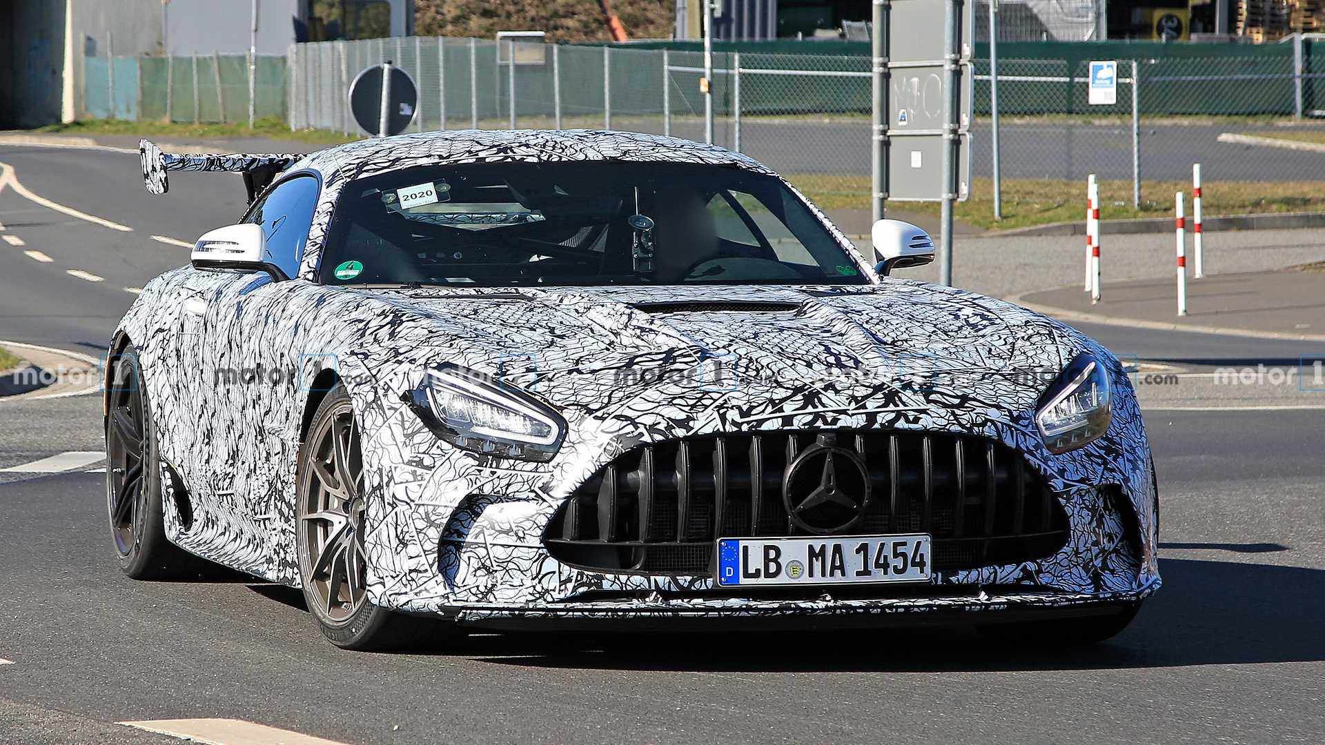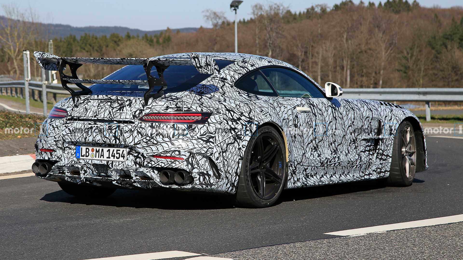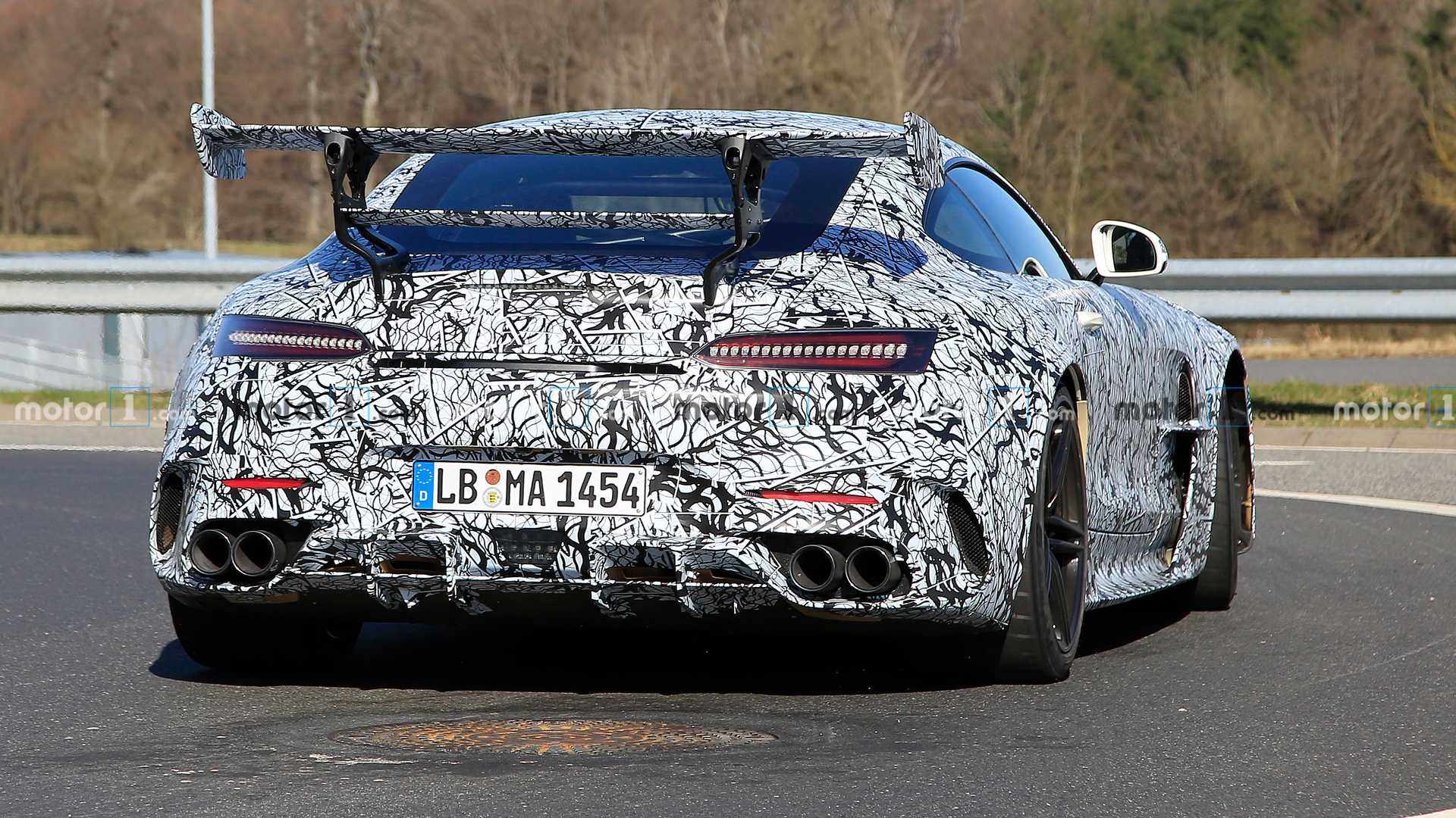 日前,外媒前方记者拍摄到了AMG GT Black Series的路试谍照。以奔驰一贯传统,其Black Series车型或将是AMG GT车型的最终版本。该路试车辆车身覆盖大面积伪装,但其极具攻击性的细节设计以及大尺寸尾翼都显得十分激进。其它细节方面,该测试版本的AMG GT的发动机盖进行重新优化,同时增加了通风口,相信是为了适配更为强劲的动力系统。超大尺寸的固定式扰流板以及下方的巨型扩散器能为该车提供强大的下压力,它究竟有多强的实力这不言而喻。根据AMG方面透露,新车依旧采用4.0T V8发动机,经重新调教后能输出最大功率将达到708马力。以教授来看,该车未来在被誉为“真理之环”的纽北赛道所获得的成绩才能充分展现它的实力。(图片来源Motor1)
