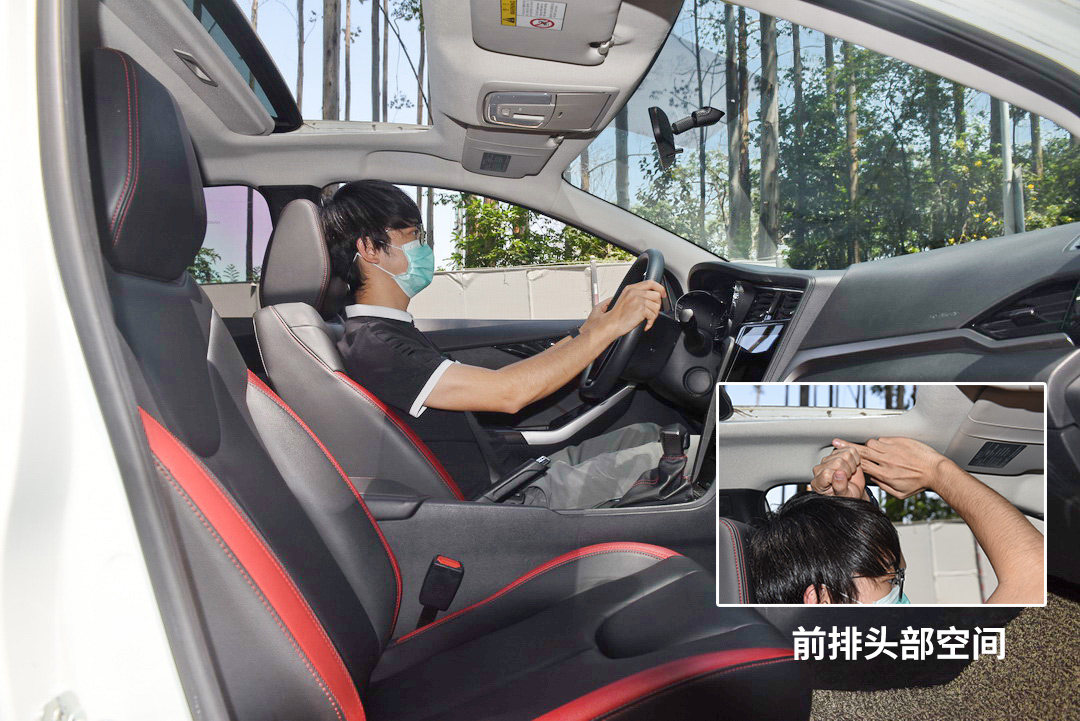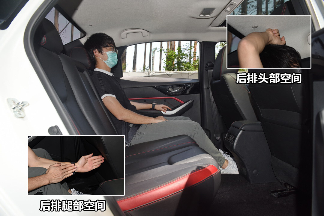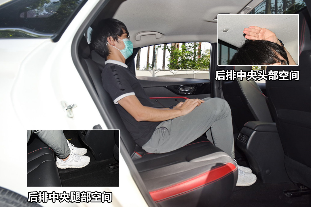 后排腿部空间十分夸张,达到两掌的长度,而且头部经过偷空处理后,有一拳的头部空间。