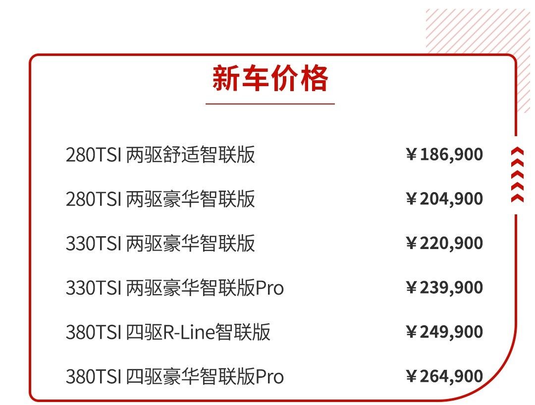 从一汽-大众官方获悉2020款探岳正式上市,售价区间为18.69-26.49万元。作为年度改款,新款探岳并没有改变外观设计,不过车型数量有所调整,本次2020款探岳取消了作为顶配的380TSI四驱旗舰型以及5款330TSI车型,共计车型由12款缩减至6款,其次最低配入门级车型售价有所上涨。而最主要的升级是配置,如低配入门级车型相比2019款新增8英寸中控屏、车联网、车内氛围灯等,其他部分车型也有作配置调整。动力方面,新款探岳继续搭载1.4T/2.0T发动机,其中2280TSI车型最大功率为150马力,330TSI车型最大功率为186马力,380TSI车型最大功率为220马力,传动系统全系匹配7速双离合变速箱,380TSI车型还配有四驱系统。