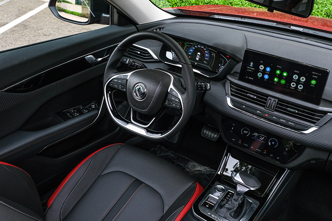 为了平衡好驾控和舒适性,车内的软质包裹、座椅都做得很有弹性,面料触感有日系车那般细腻,兼顾了包裹性和舒适性,再加上科技化的座舱环境,比起以往东风风神的车型,整个车厢环境的品质感有一定的提升。