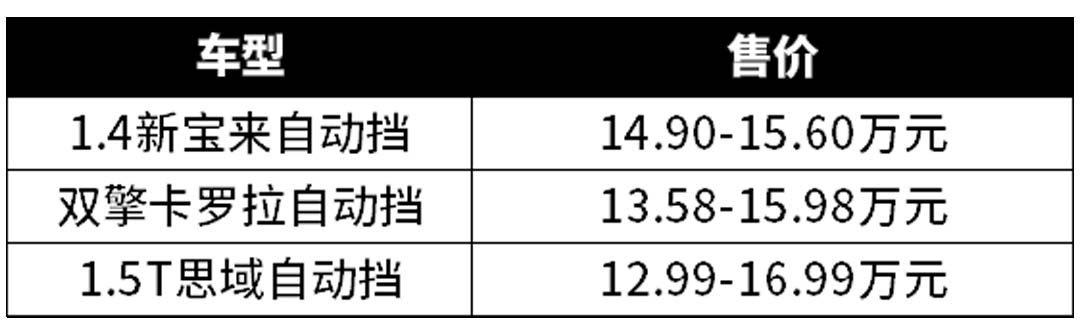 而且在动力更强的车型中,1.4T宝来自动挡的起步价为14.9万元,1.5T思域自动挡起步价为13.99万,卡罗拉双擎起步价为13.58万元,可以看出,在动力更强的车型上,宝来的起步价也是三者中最高的,并且贵了1万多元。