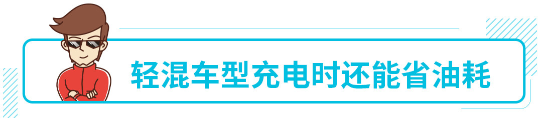 与其他混动系统不同的是,轻混车型的电池组电量并不直接从燃油机中获取,而是通过能量回收的方式将动能转化为电能并存储到电池中,这套系统,仅能量回收功能就可以降低整车大约7%的油耗。