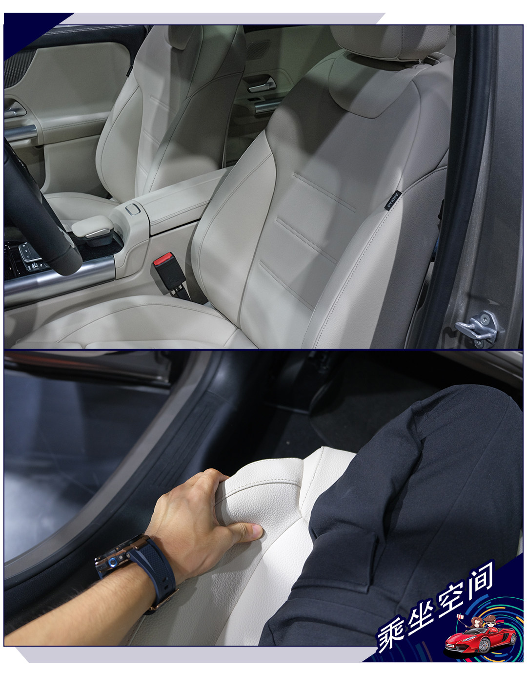 对比了一下同场的GLC和GLB,GLA的坐垫要稍微柔软一点,包裹性也相对到位,舒适性跟上一代相比有很大提升,可见这一代GLA的转型是相当明显的。