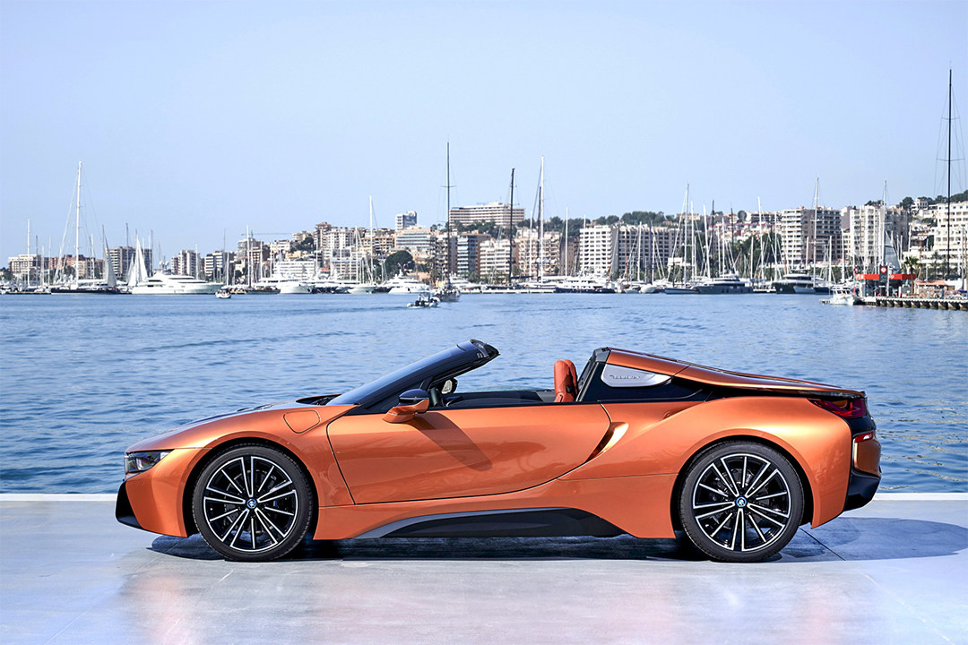 比起宝马i8用户青睐的唐宁顿灰色+硬顶搭配,电铜色+敞篷版i8更对教授的口味。软顶敞篷敢为人先地选用3D打印技术打造,当车辆时速低于50km/h能进行自由启闭,整个开启或折叠过程仅需15秒,辅以由碳纤维与铝合金混合材质打造的无框式鸥翼门,启闭间尽是未来感,异性磁石在此!