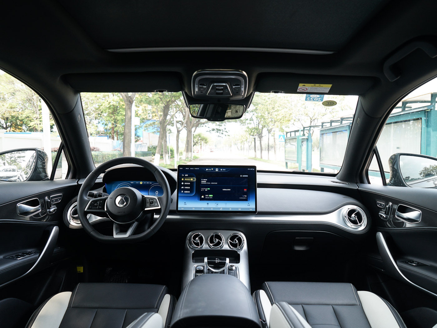新车采用了环抱式驾舱设计,配合中控台简洁的线条以及双色内饰色调,让整体极具层次感。细节方面,该车采用了三辐式多功能方向盘、14.1英寸2.5D曲面大屏、12.3英寸液晶仪表等,进一步提升了该车科技感。