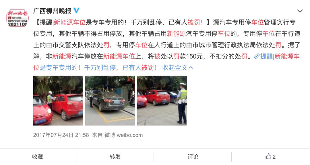 截止到目前为止,已实施新能源车车位专用制的地区有北京、上海、深圳、广州、武汉、南京、柳州、南宁等城市,其中深圳别出心裁的推出了新能源车免费停车的激励制度,而其它城市则针对燃油车乱停新能源车车位的行为推出了扣分罚款的措施。
