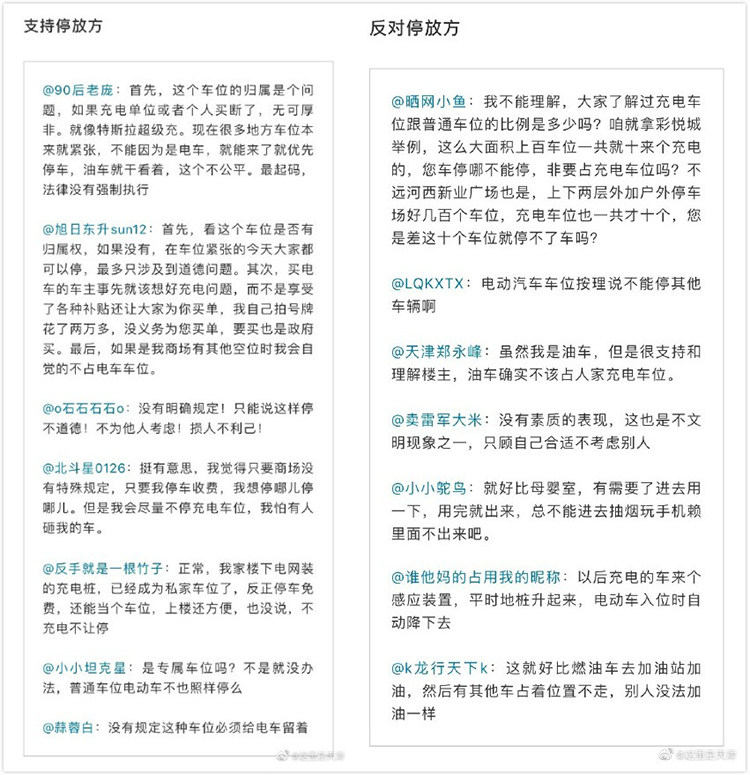 不过,对此也有燃油车主表示:有时候电动车少,燃油车没地方停,况且大家都是付费来停的车,为什么新能源车位就有特权呢?那燃油车用的停车位是不是新能源也不能停呢?而大多数新能源车主又觉得,没充电桩没法充电,燃油车不应该占新能源车位。