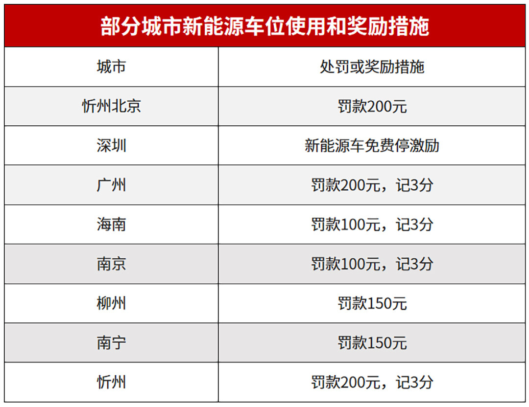 针对新能源车位常被传统燃油车占用问题,全国部分城市地区都已启动新能源车车位专用制度,并且对燃油车车辆占用新能源车车位乱停的现象进行了整治和处罚,最高可罚款200元扣3分。