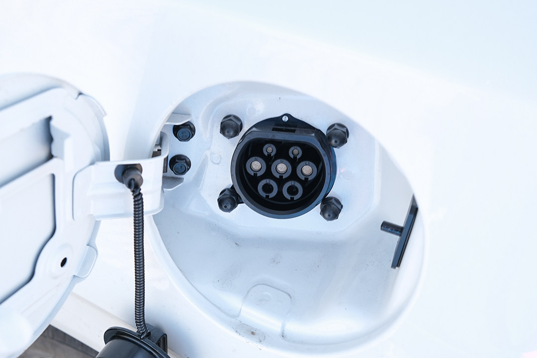 位于左后翼子板处的充电口,支持100kW的充电功率,30min内可以将电量从30%充至80%,充电速率位居主流。更重要的是,它引入了和比亚迪VTOG相似的外放电功能。