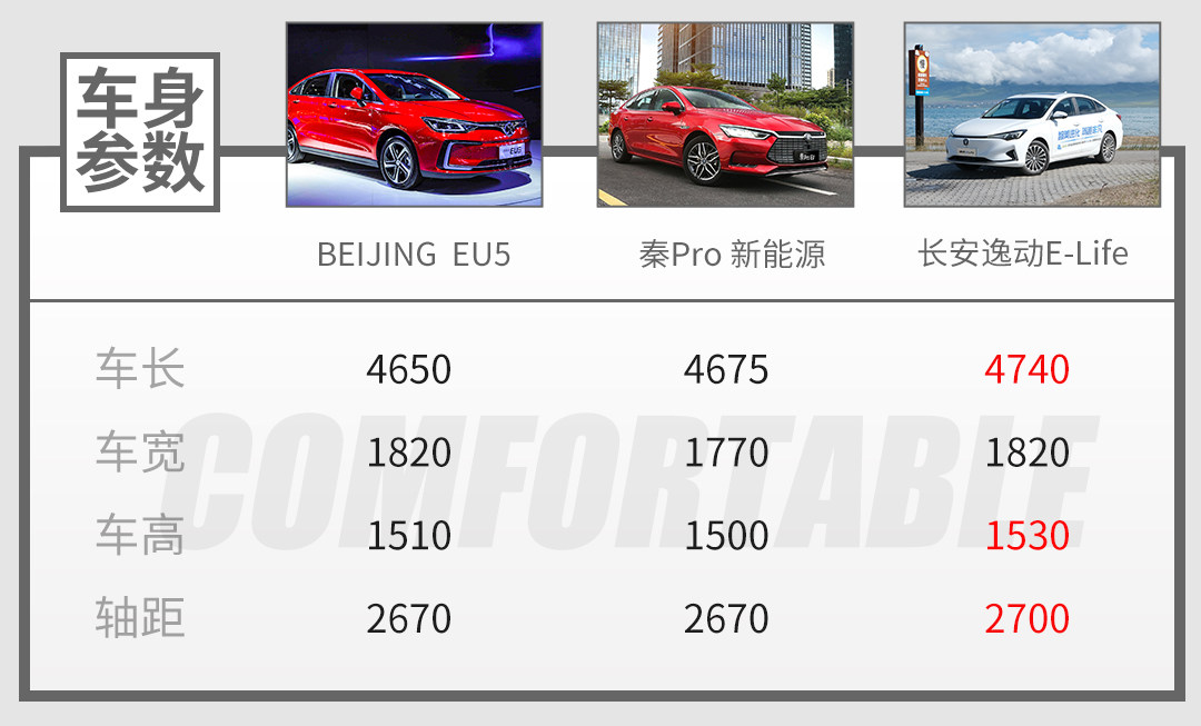 作为一款紧凑型纯电轿车,逸动E-Life的轴距达到2700mm,对比同级的其它车型,轴距占了一些优势,而这也为它打造足够宽裕的空间打下了坚实的基础。