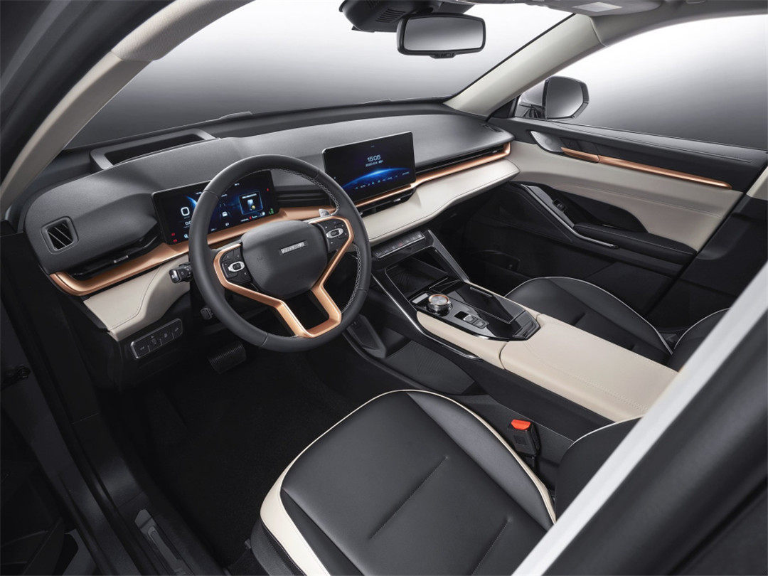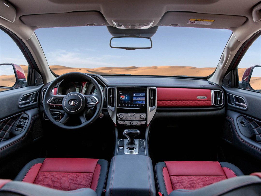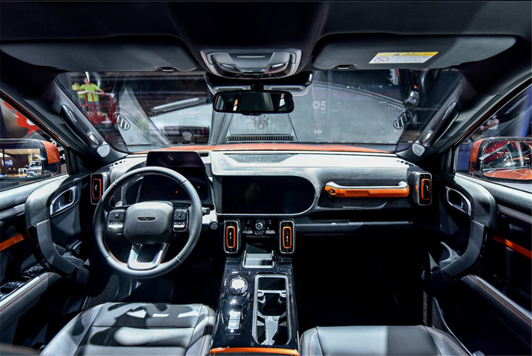 这种感觉同样延续到内饰,怎么看都不像家用城市SUV,仪表台副驾驶一侧的扶手也是硬派越野车多采用的设计。然而,我们在车内却找不到越野车常见的低速分动箱等越野硬件的控制模块,旋钮式换挡机构也和新款H6很像。