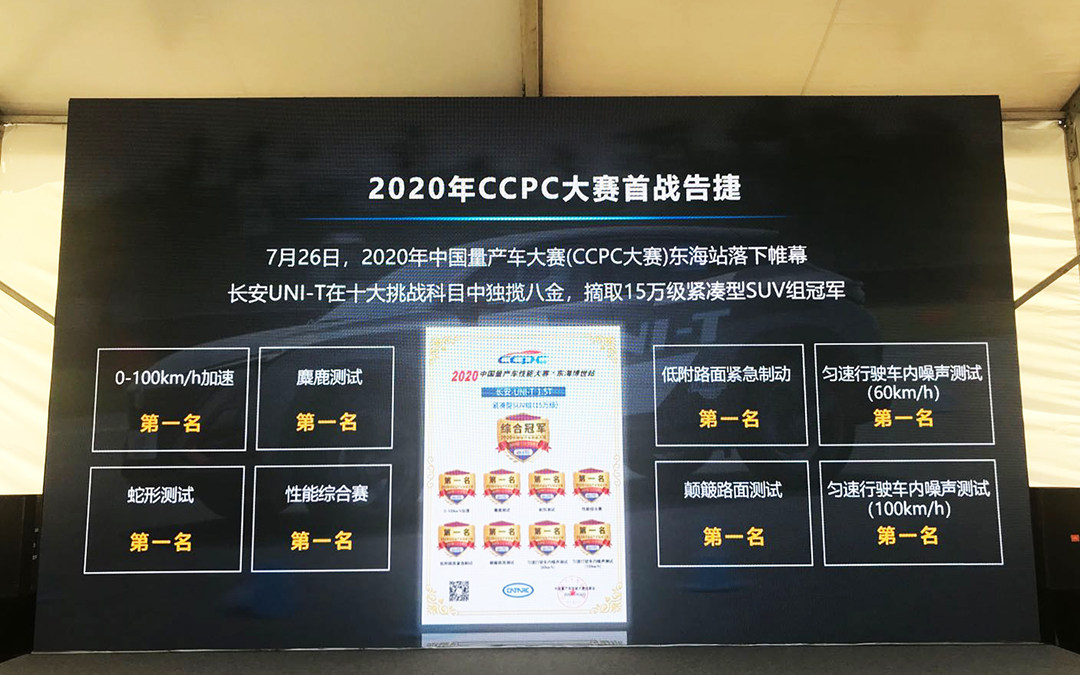 在7月26日举行的2020年CCPC量产车性能大赛东海站的比赛中,UNI-T在紧凑型SUV组别竞争中,就力压其他同级别参赛车型,在0-100km/h加速,麋鹿测试,蛇形测试等项目中表现优异,独揽八个科目的第一名,总成绩获得本组冠军,也算是彰显了UNI-T的强悍实力。