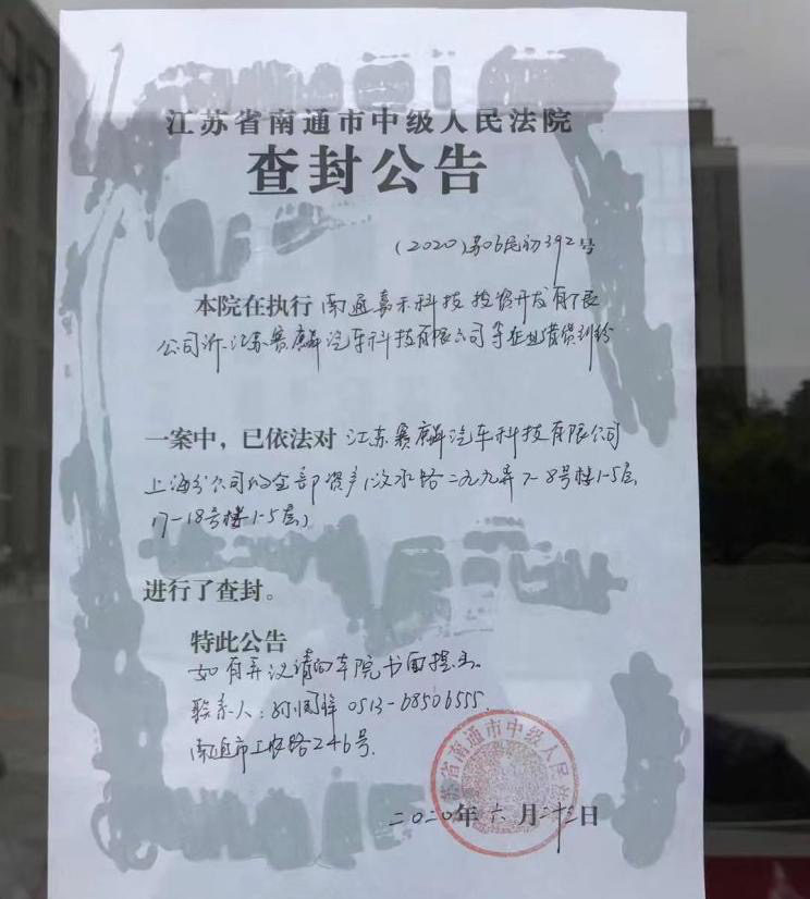 此事一出便受到各界关注,不少汽车人都认为这又来了一个坑钱的新势力,而随着事件不断发酵,江苏省方面也采取了行动:6月23日,江苏省南通市中级人民法院一纸公告,宣布查封赛麟汽车上海分公司、江苏赛麟如皋两个工厂以及144套公寓,冻结赛麟汽车账户,同时如皋经济技术开发区管委会对王晓麟等人发起刑事立案调查。