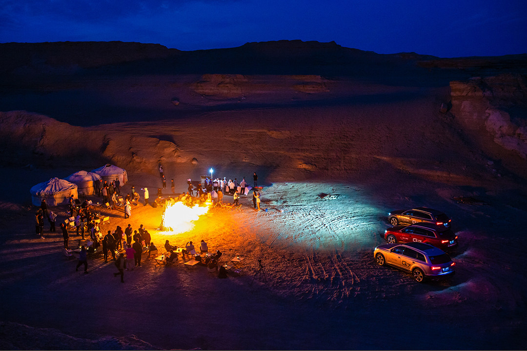 3天的时间,从甘肃敦煌出发,中间穿越国道、高速、沙漠、戈壁、河床……途径阿克塞、柴达木盆地、冷湖、火星营地、水上雅丹、红崖……最终到达青海格尔木,教授驾驶着全新奥迪Q7,带着心中所有的好奇与疑问,开启了这趟无畏之旅。