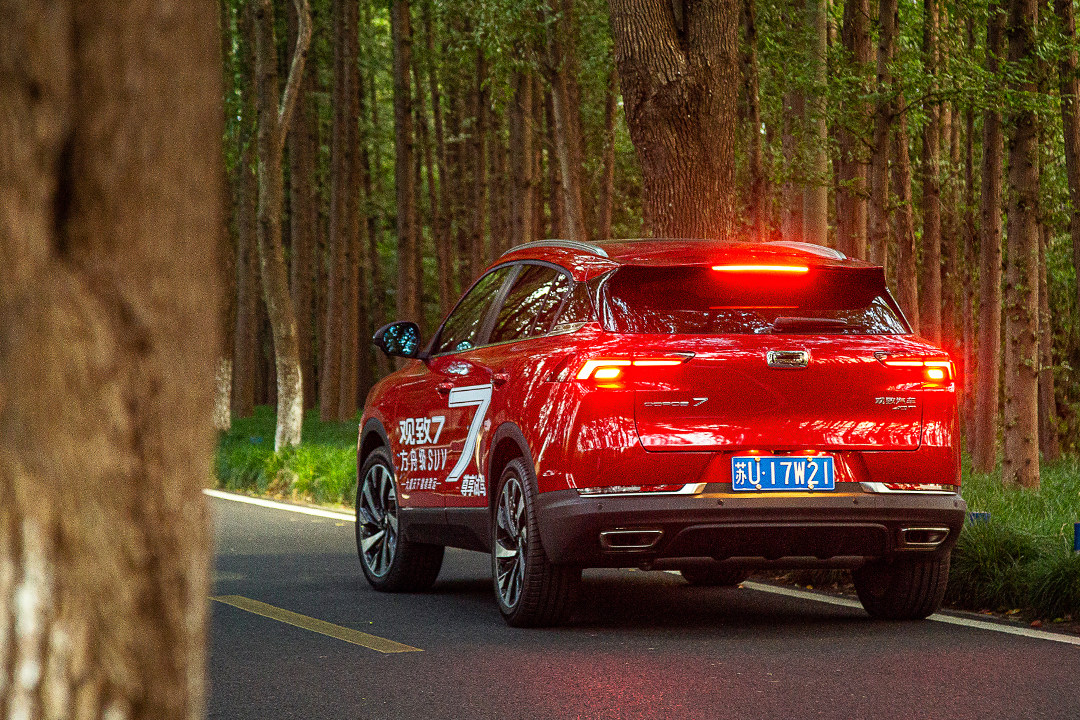 以往的观致3和观致5有种欧洲车的感觉,但是这辆观致7就完全不一样了,就变成了比较大众化的风格,一上来就感觉到有种厚重感,而且转向是很轻柔很舒适的那种,再加上车身是有点侧倾的,所以这是一个比较常见的家用SUV的表现。