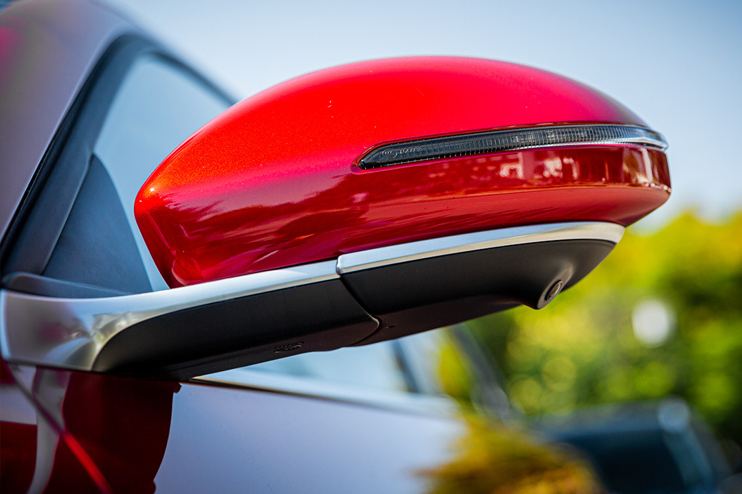 后视镜集成了360影像,集成了转向灯、倒车可以下翻、自动折叠。