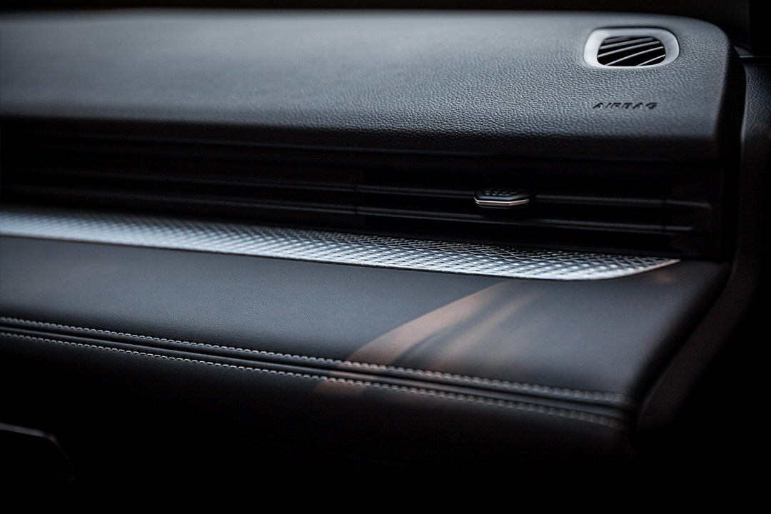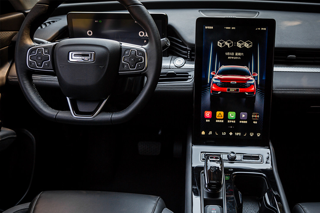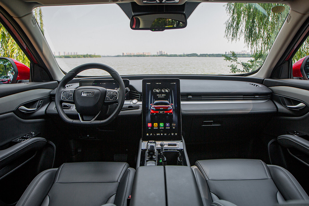 第一个是内饰的用料和做工,首先是内饰设计,空调出风口和中控屏的布局有点像蔚来,看起来就很高端。然后用料很多地方都是软材料,而且这些皮料的接缝、材料的做工手感、再到按键的做工和质感,都令人满意。