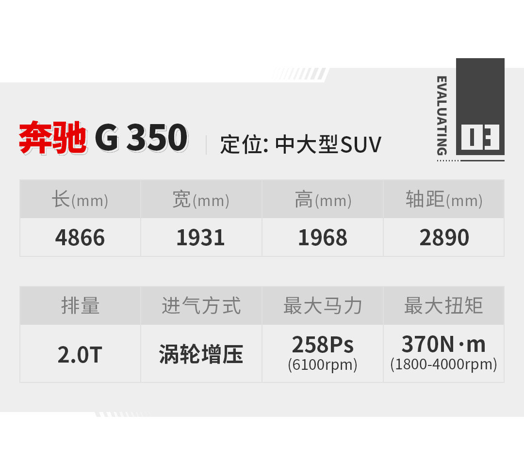 对于热爱汽车的车迷来说,V8发动机是与奔驰G级越野车相互捆绑的事物,搭载V8发动机的G 500与G级AMG车型在国内车迷心中留下了非常深刻的印象。因此,当奔驰推出了这样一款搭载2.0T发动机的G 350时,车迷们当然是不会接受这种排量减半、缸数减半的“降级行为”的。因此在车迷眼中,G 350可能并不合格。