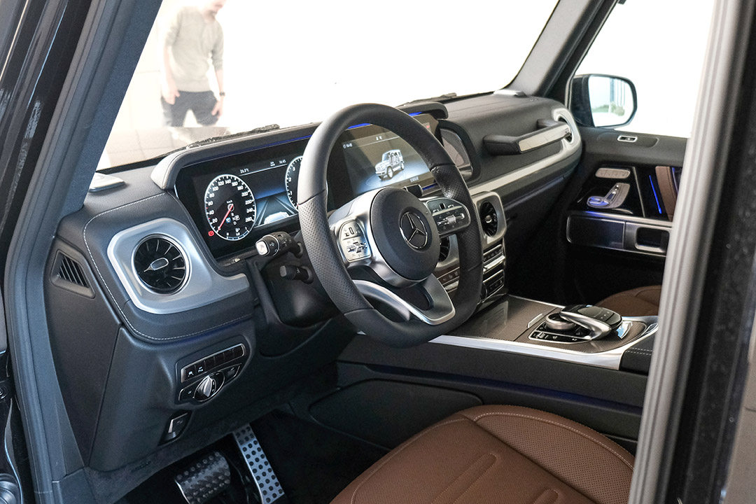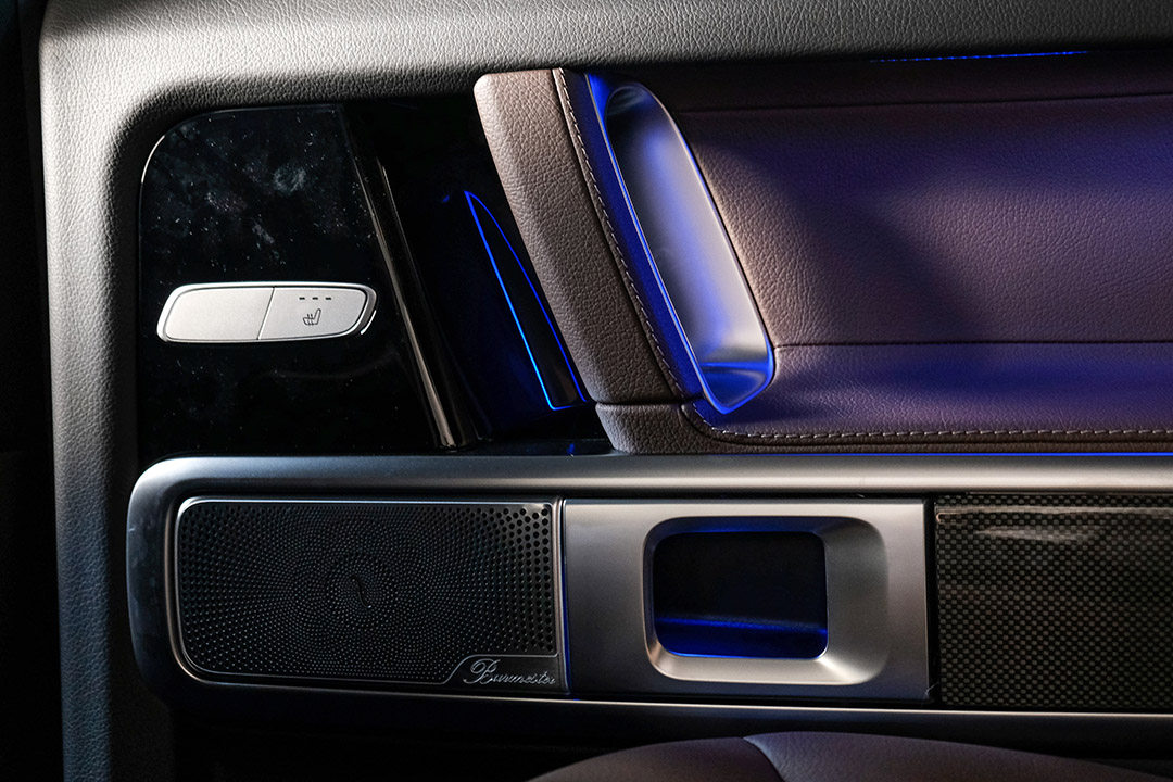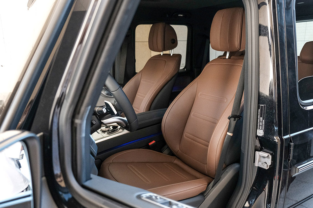 内饰同样如此,G 350的内饰设计风格和G500是完全相同的,当前奔驰标志性的双联屏依然能带来出色的显示效果,大量的金属与真皮材质以及优雅绚丽的氛围灯一一登场;而令人惊喜的是,广受好评的柏林之声音响以及那给人带来无限安全感的前排座椅主动侧向支撑功能均有配备,让G 350的车厢豪华氛围达到与G 500基本相同的水平。