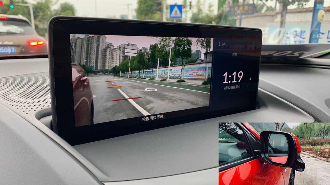此外,该车还配备了右侧盲区触发功能,即开启右转向灯时中控屏会显示侧后方的实时影像,很好的避免盲区事故发生。不过,教授觉得布置在外后视镜的摄像头太过突兀了,如果能再优化一下就更好了。