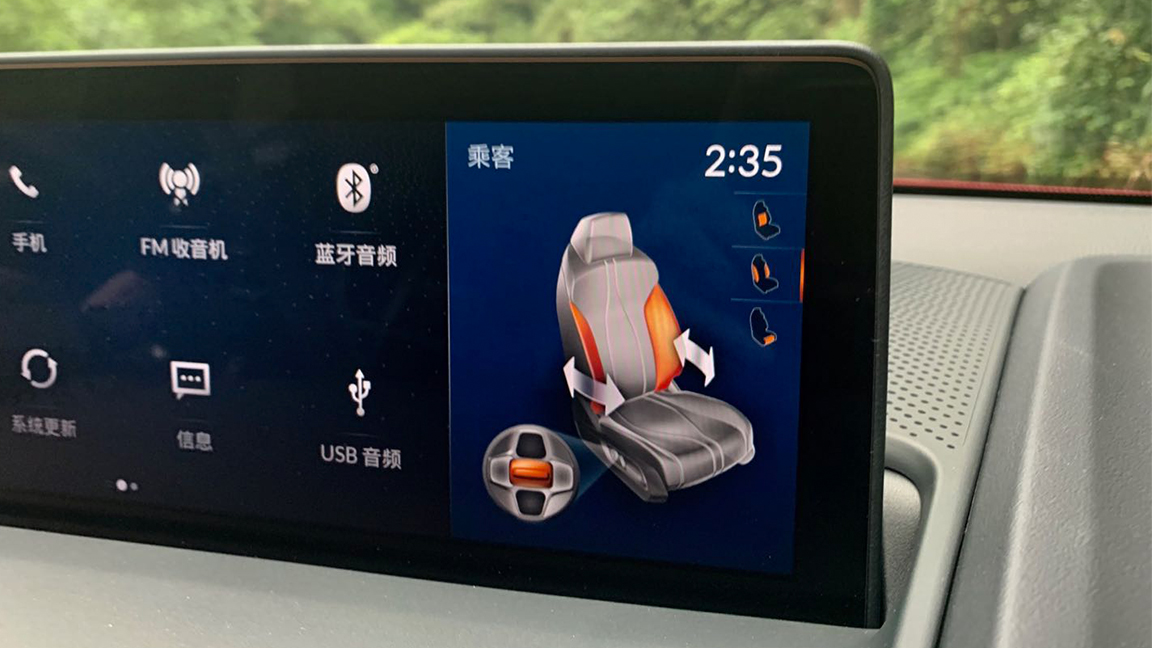 其中控屏尺寸为10.25英寸,画面操作灵活性不错,没有卡顿、拖拽之类的情况,不过唯一不足的就是只能通过控制面板来操控,而不能直接触摸。原因可能跟整个中控设计布局有关系,毕竟屏幕设置在较高且深入的位置,即使能触摸也不太容易够得着。