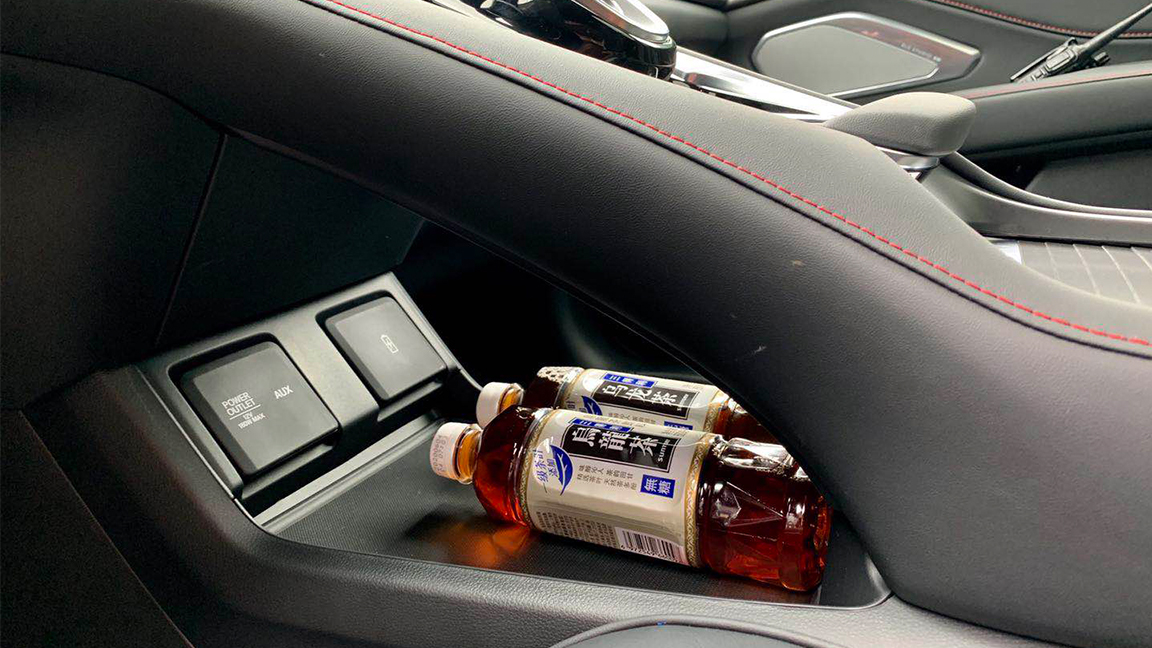 相比之下,教授更欣赏它的储物空间利用率。在前排有“掏空”处理的悬浮式中控,其内部摆放两支饮料加一些杂物都不是为问题,而且还提供了AUX、12V和USB接口,个人认为这是前排摆放手机的最好地方。
