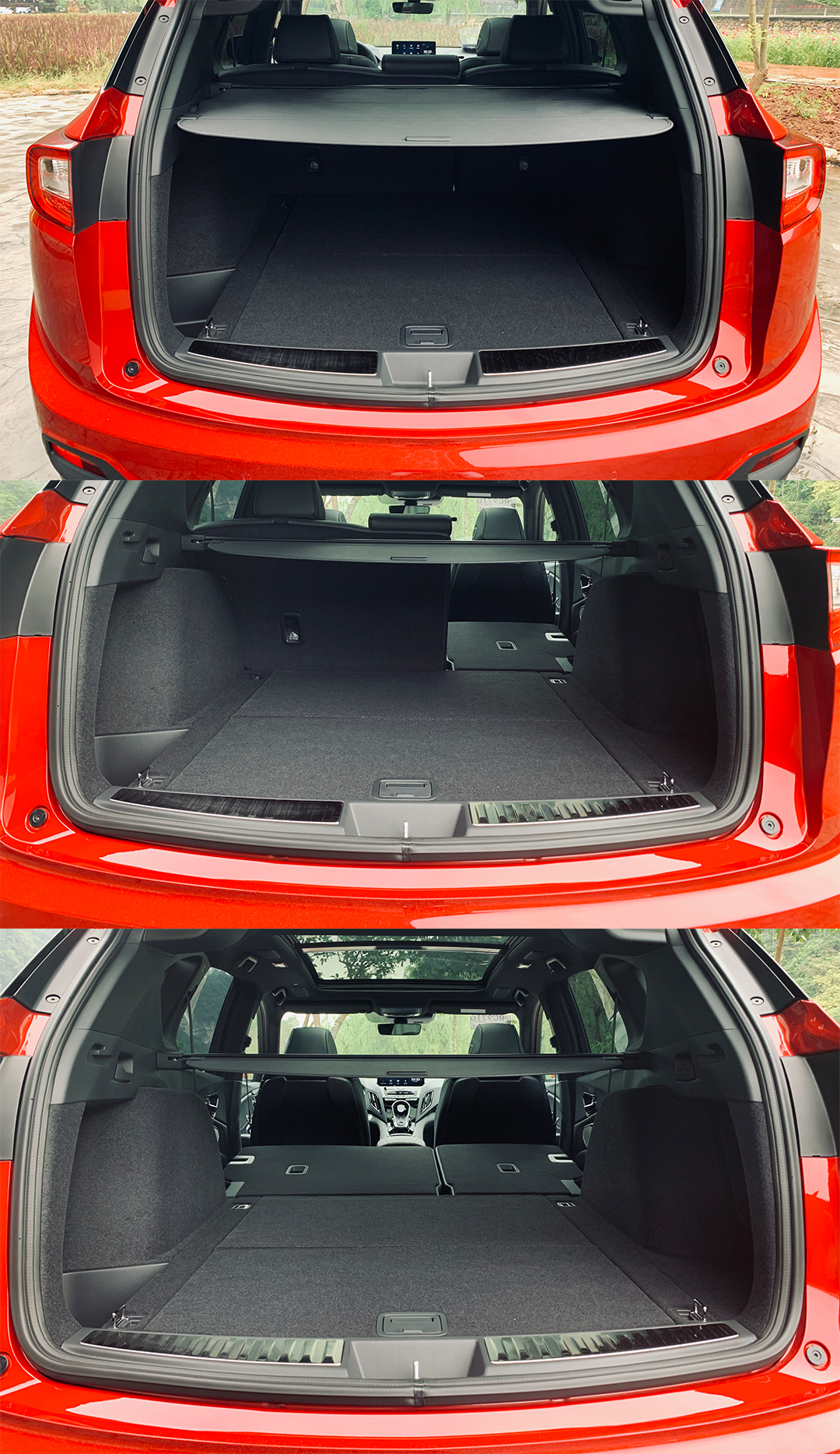 还好其后排表现不算很糟糕,地台接近于全平,中间乘客不用太过憋屈,而且头顶还有一个巨大的可开启全景天窗,这样一来空间视觉感就变得更宽阔了。