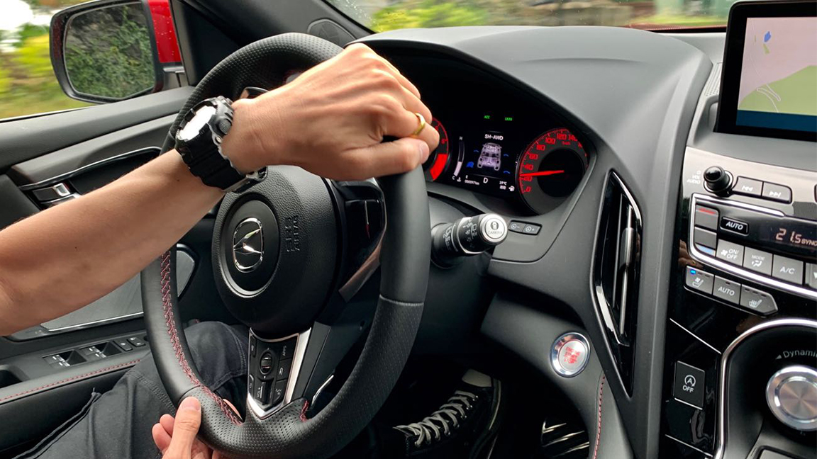 还没等到任何操作,变速箱就保持在高转速,方向盘马上绷紧,手感明显加重,油门变得极其灵敏,一脚下去就知道“男人为什么要努力”。而且RDX还带有“自动补油”以及连降四挡的“小聪明”,直接将转速拉升随时保持最佳的发力区间,同时车内会有模拟声浪,为整个驾驶氛围助力。