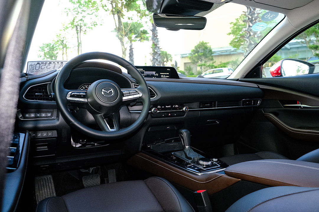 CX-30的内饰与昂克赛拉采用了相同的设计手法,悬浮中控屏小巧精致,视觉效果不错。整个中控台的层次感很丰富,颇具设计感,内装的材料也都是软质材料或皮革材料,无论是看上去还是摸起来都丝毫没有廉价感。