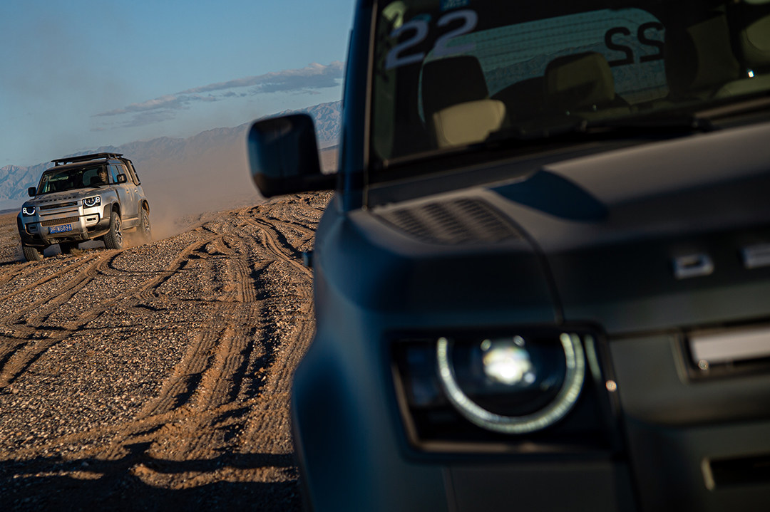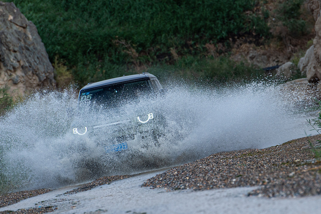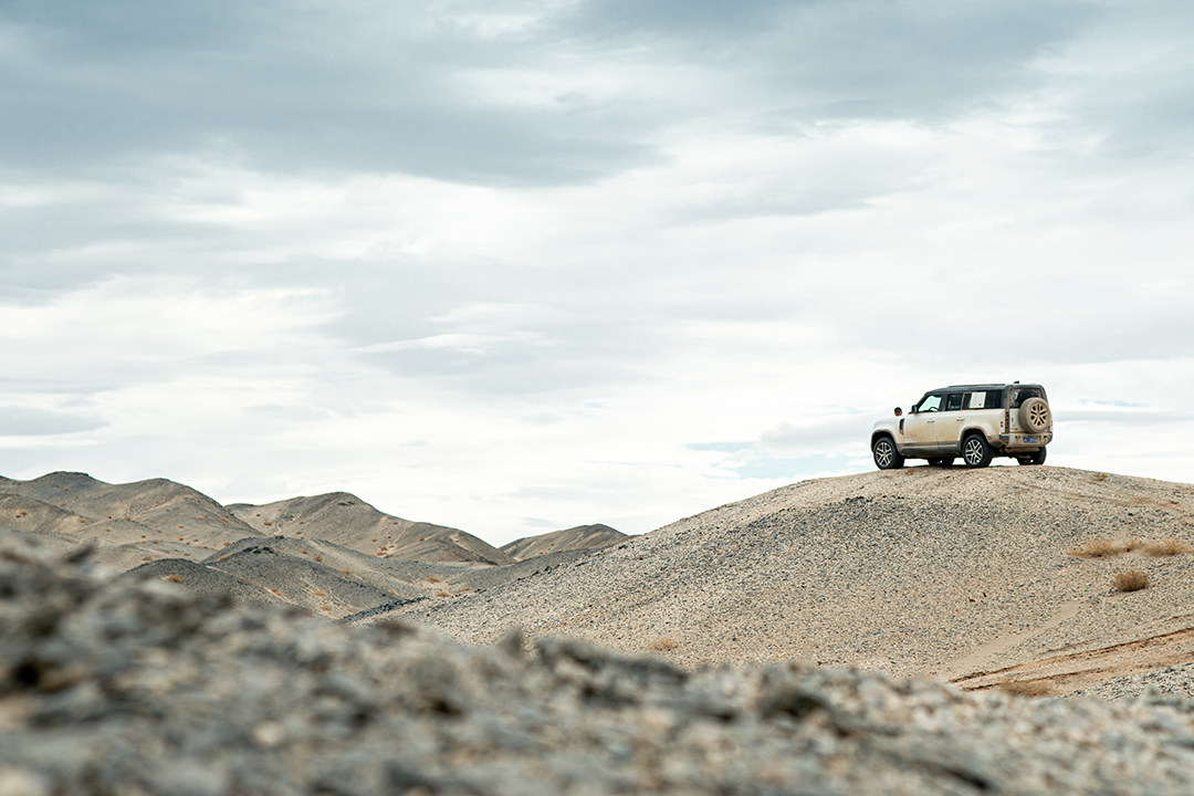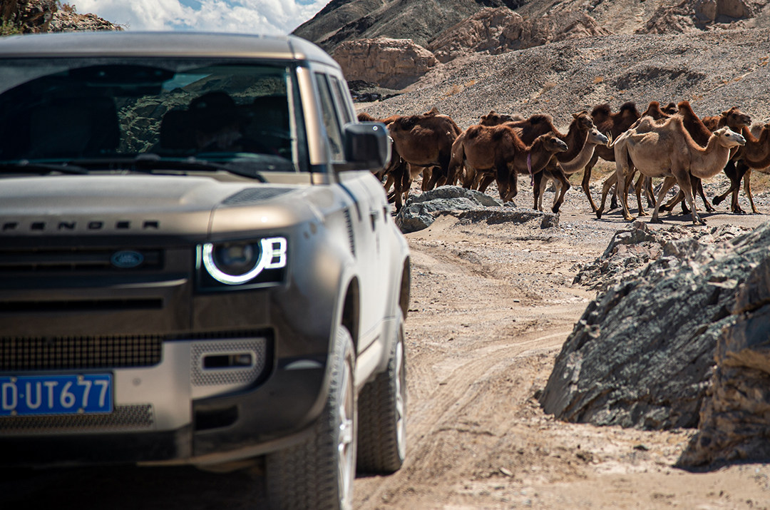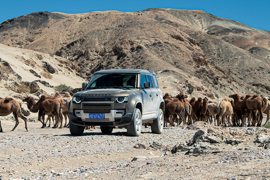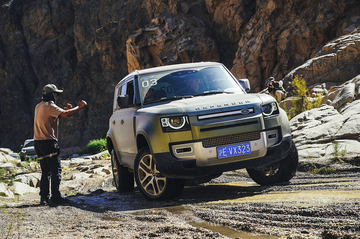 行驶在凹凸比较明显的戈壁和搓板路,卫士的车身会给你比较直接的反馈,路面信息比较直接地传递给你,它的车身动态和响应性跟普通承载式车身有极大的差异,一方面是空气悬架调校得很有支撑性,另一方面也是全新车身结构的功劳,同时有着超高离地间隙,行驶非铺装路面基本毫无压力。