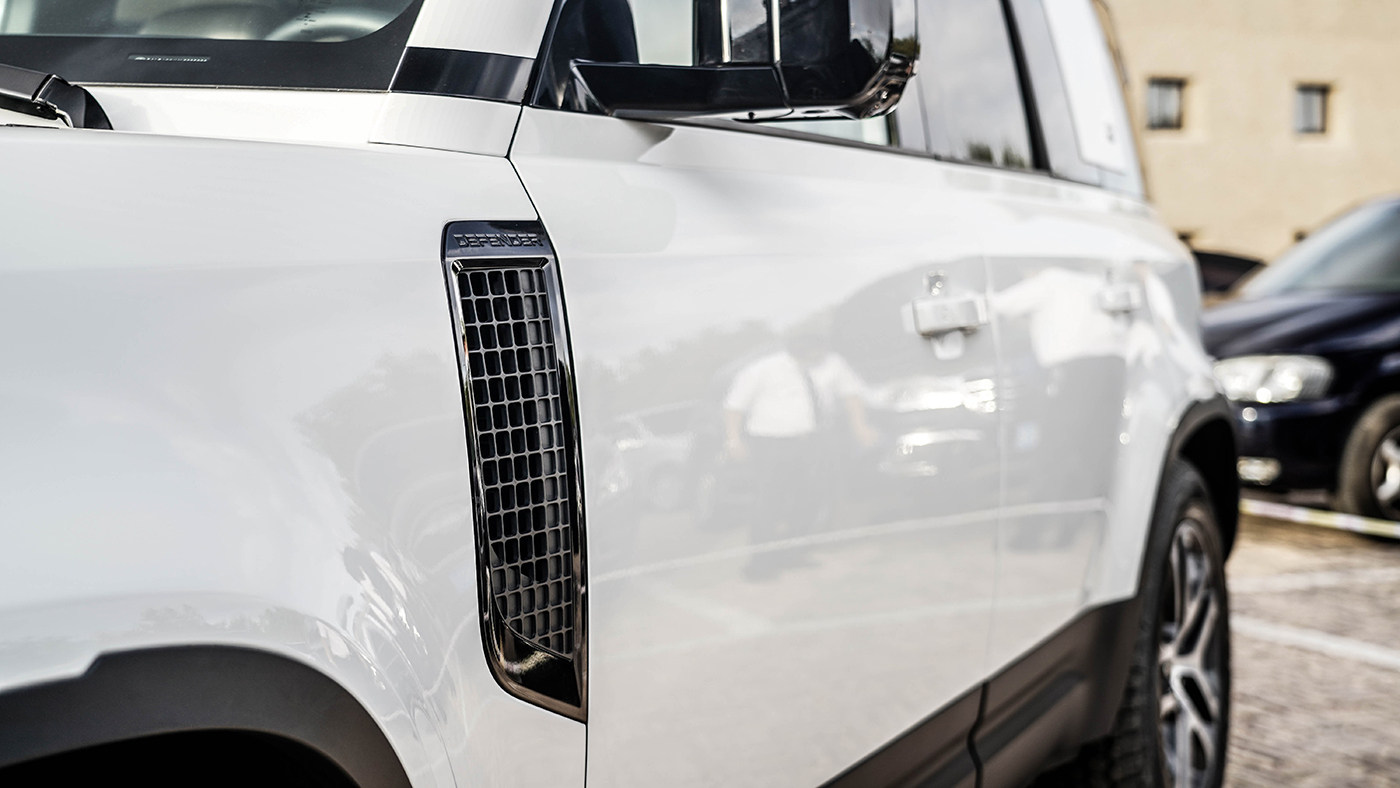 路虎把卫士的进气口设计在A柱左侧位置,最大涉水深度为900毫米,加装涉水喉之后可以提升至1.9米,而右侧的进气口则是装饰用。