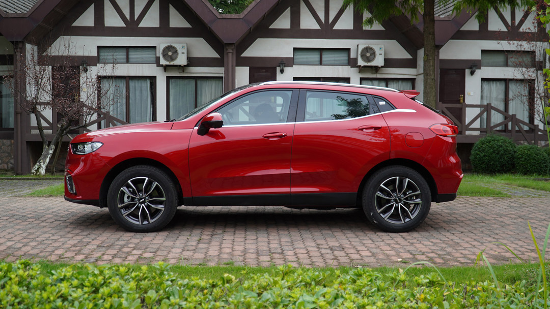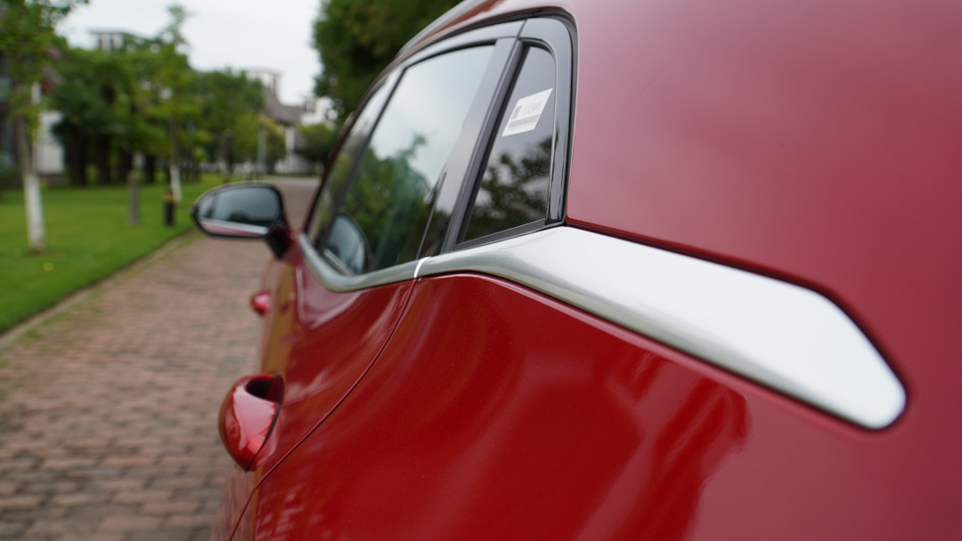 侧面造型中规中矩,高挑的腰线是WEY家族化的设计元素,更高的腰线有助于增强该车辆的运动特质,但是会影响到车内人员的视野,特别是后排乘客,车顶线条下滑,腰线上扬,二者结合起来,后排乘客的视野会受到一定影响。